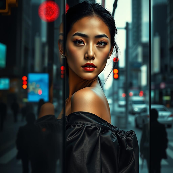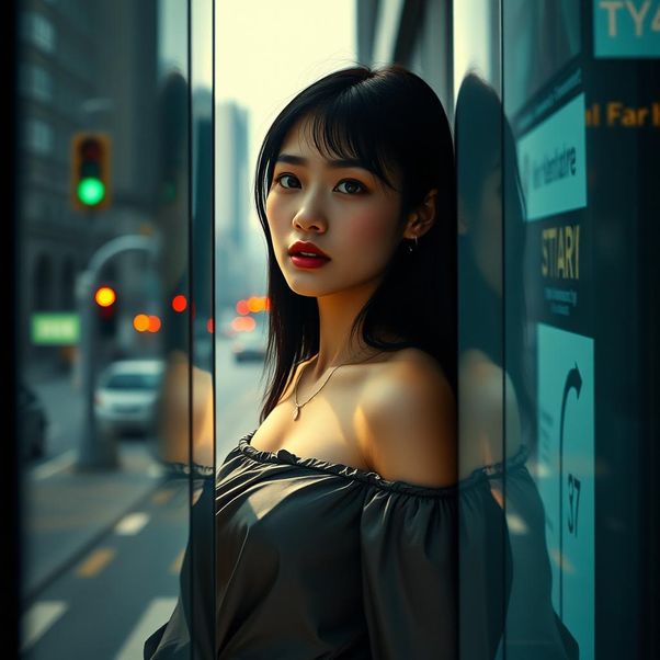 En el transporte, los anuncios se sucedían sin pausa. Un rostro se superponía con otro en el cristal y, por un instante, no era posible distinguir cuál pertenecía a quién. Una sombra cruzaba un anuncio luminoso y lo interrumpía. El hombro descubierto reaparecía en ese cruce, fragmentado por el reflejo, reducido a un plano de luz.