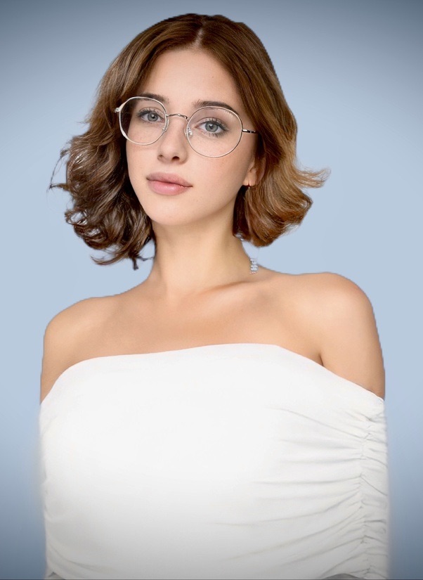 Cuando ella entra, el cuarto de paredes azul tenue parece expandirse. El color recibe la piel y la refleja, la vuelve centro sin necesidad de contraste violento. El aire circula libremente alrededor de los hombros descubiertos, y ese contacto directo —piel y atmósfera— reorganiza la escena completa. El drapeado, la postura, la luz: todo se alinea en un instante claro. No es que ella ocupe el espacio; es el espacio el que se redefine a partir de su presencia.