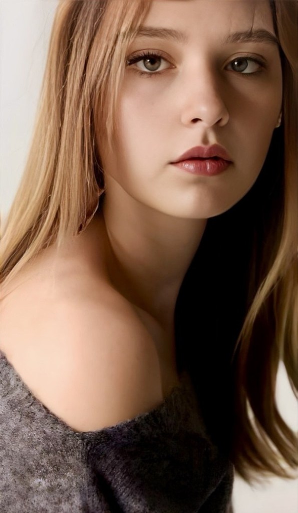 Todo converge allí. El gesto mínimo de los labios sostiene la escena completa: la piel al aire, el gris del tejido, la luz que no invade. El encanto no se dispersa; se concentra. Vive en esa frontera sutil entre decir y callar, donde los labios, sin moverse, ya han dicho todo.