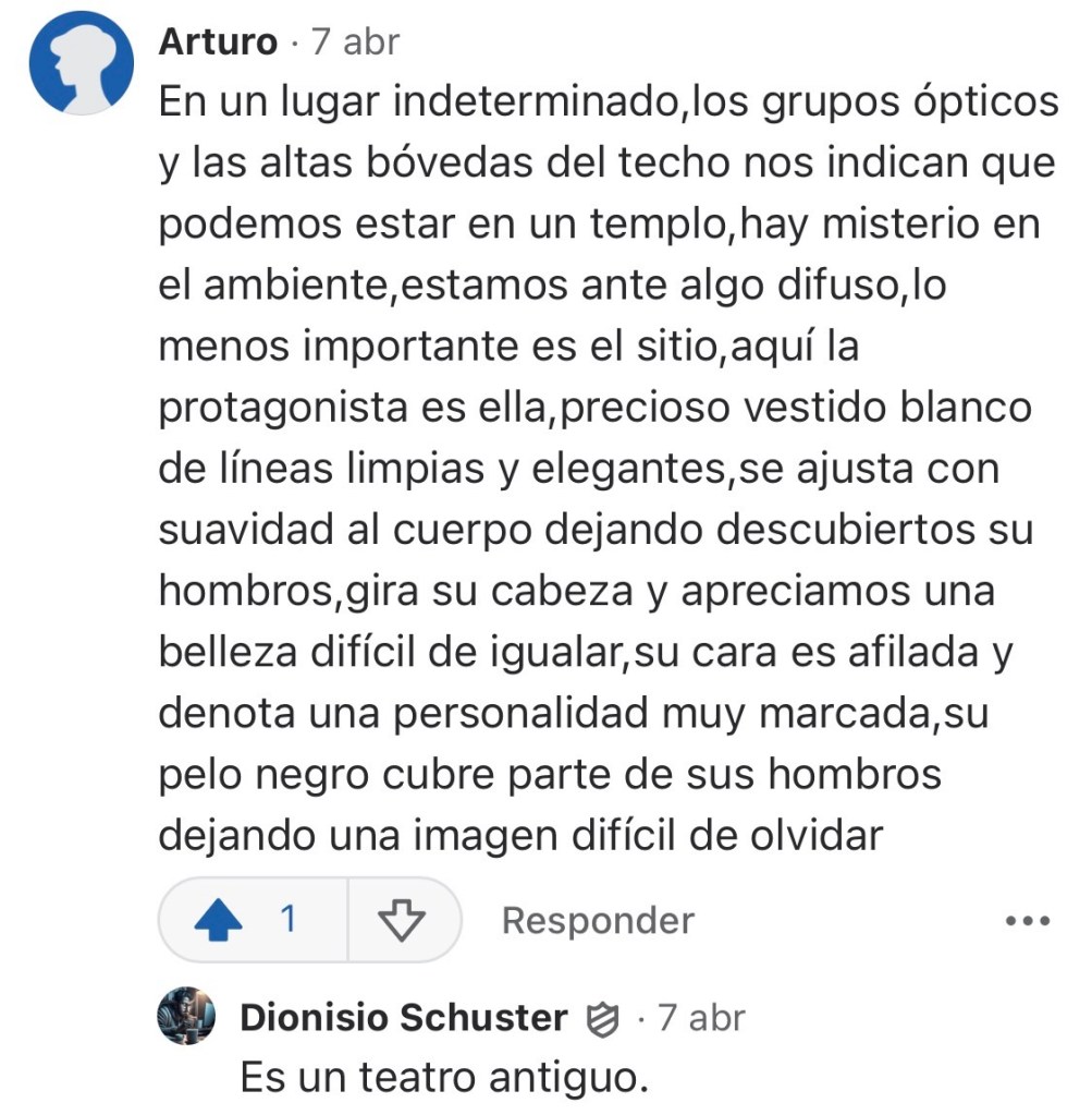 Se gira apenas, lo suficiente para que la mirada llegue primero y el resto ocurra después. El fondo, con luces cálidas y formas repetidas, permanece difuso, como si perteneciera a otro ritmo. Hay una pausa en el aire, breve pero suficiente. Todo parece contenido en ese instante, justo antes de que continúe, pues lo sabemos bien, nada empezará sin ella.