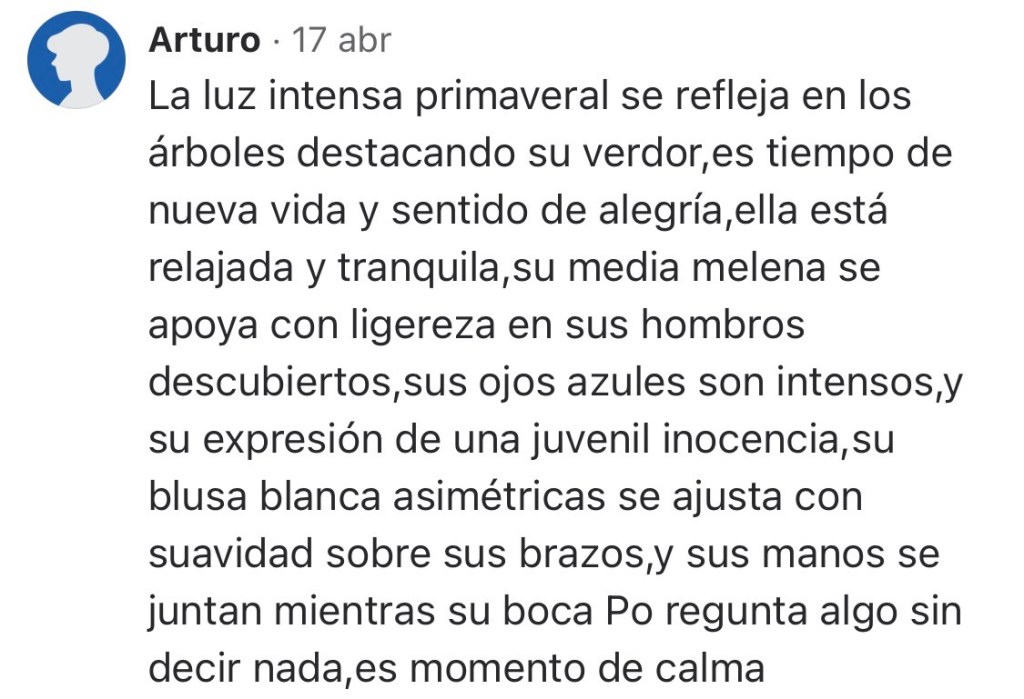 El rostro se orienta hacia el frente, pero la mirada no se fija con dureza; queda abierta, disponible, con una calma que no necesita afirmarse. Los labios entreabiertos sugieren un instante previo a la palabra, o quizá posterior.