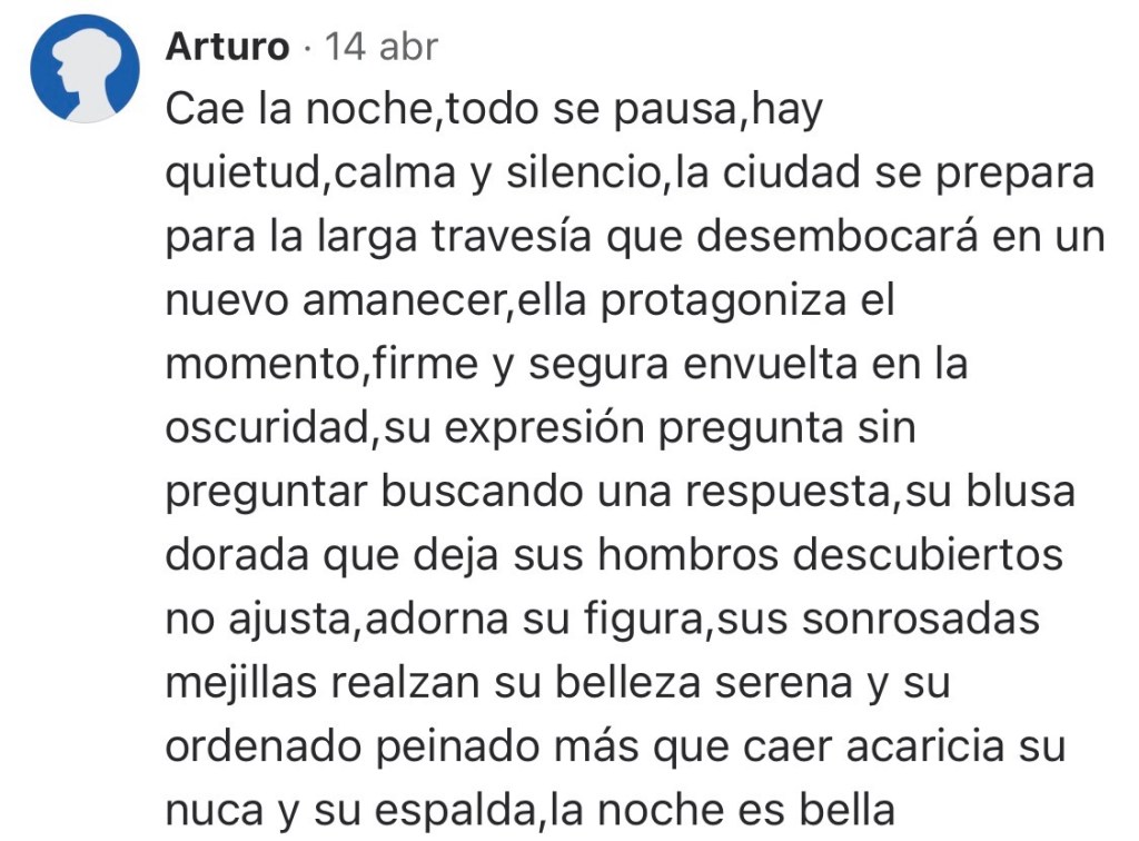 Las luces urbanas, fragmentadas en reflejos, se dispersan como recuerdos inmediatos: fragmentos de conversaciones, risas que ya se disuelven, pasos que pronto tendrán otro ritmo. Ella no se apresura. Sabe —sin necesidad de pensarlo— que este breve umbral, este último respiro de libertad ligera, tiene su propia forma de quedarse.