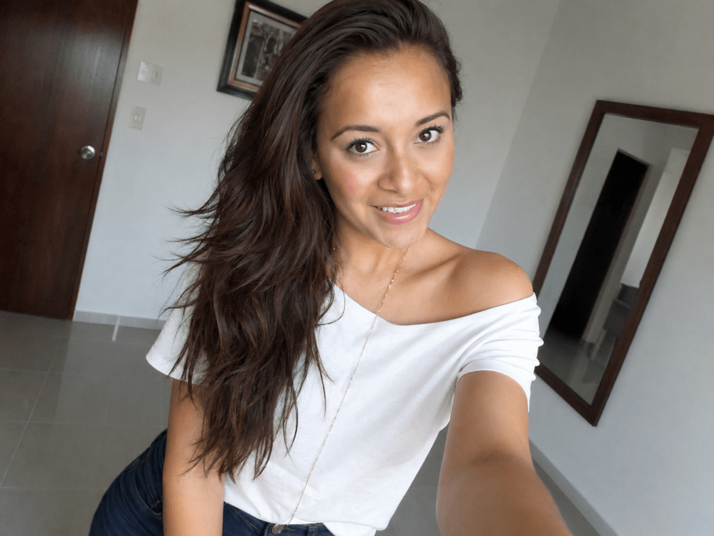 La escena se abre en una intimidad sencilla, casi cotidiana, donde todo parece dispuesto para recibirla tal como es. Su mirada se acerca sin distancia, directa pero cálida, como si el momento no necesitara más preparación que su presencia. Los hombros descubiertos recogen la luz suave del interior, y en ese gesto hay algo honesto, inmediato, que convierte lo cercano en significativo.